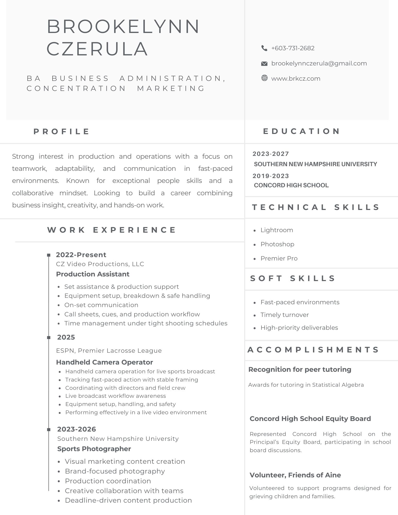My work in these settings has required a strong understanding of workflow, production timelines, and professional collaboration. I excel in fast-paced environments, communicating clearly with producers, talent, and staff to ensure production needs are met efficiently and effectively.